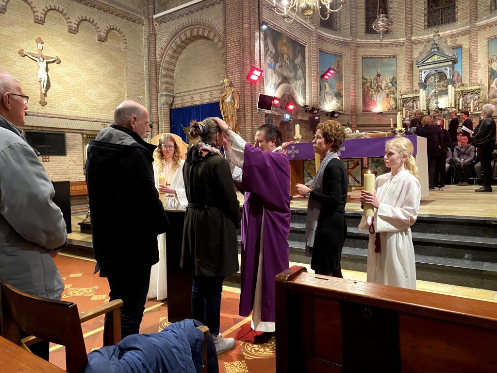Op woensdag 26 februari begon de veertigdagentijd oftewel de vasten. Aswoensdag heet zo, omdat de mensen die aan de viering deelnemen een askruisje op het voorhoofd krijgen als teken van hun vergankelijkheid. Tot nu toe durfde ik zelf de askruisjes niet toe te dienen, maar aangemoedigd door de mensen die dat de vorige jaren in mijn plaats deden, waagde ik het er toch maar op. Mijn linkerhand legde ik op het hoofd van degene die voor me kwam staan en met mijn rechter duim tekende ik dan zo goed en zo kwaad als het ging een askruisje op zijn of haar voorhoofd. Ik heb het askruisje altijd een mooi teken gevonden om zelf te mogen ontvangen. Nu met het toedienen kwam daar een dimensie bij. Ik werd me nog scherper bewust van de vergankelijkheid en het geploeter van ons allemaal. We proberen er natuurlijk het beste van te maken, maar niet alles loopt goed. Dat hoort bij ons mens-zijn. Wat ons in het verleden tegen zat, dat kunnen we maar het beste in de handen van God leggen. Het heeft waarschijnlijk weinig zin ons er nog druk over te maken. Beter is het om vooruit te kijken. Wat komt er op ons pad, hoe gaan we daarmee om… Niet alles zal makkelijk gaan, maar we zijn er zelf bij om te proberen er iets goeds van te maken, voor onszelf en voor de mensen om ons heen. Bidden, vasten en elkaar aandacht geven. Het zijn geen geboden, maar richtingwijzers voor de veertigdagentijd. Ze alle drie tegelijk volgen is misschien teveel van het goede, maar één van de drie, dat zou toch zeker moeten kunnen!