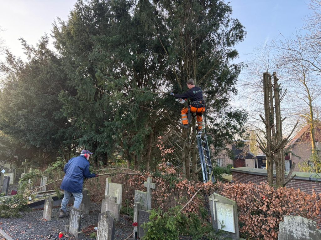 23 januari 2026De afspraken waren gemaakt en gelukkig was de sneeuw verdwenen, dus kwamen maandag 20 januari de groep tuinkabouters onder leiding van Peter Smal en zijn collega Jos Reus bij elkaar voor groot onderhoud van de pastorietuin. Omdat het een hele grote klus was, heeft Jan Beentjes extra hulp erbij gevraagd en kwamen Sjaak Blom en John Appelman de ploeg versterken. Er moest heel veel worden gesnoeid rondom de tuin en het kerkhof. Veel overhangende takken werden ingekort, omdat deze overlast bij de buren veroorzaakten.
