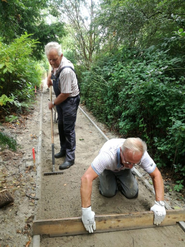 8 augustus 2019Heel veel mensen zijn op vakantie, maar de tuinkabouters werken stug door. Elke dinsdag wordt er geklust in en om de tuin. Nu wordt het tegelpad rondom de begraafplaats aangepakt. Eerst zijn de nieuwe bandjes geplaatst. Daarna wordt er met man en macht door de tuinkabouters gewerkt; het uitgelijnde pad met zand vullen, vlakken, tegels sjouwen en neerleggen. Bravo mannen, het ziet er weer pico bello uit. Heel veel dank voor jullie inzet. De parochieraad [column_1 width=”1/3″ title=”” title_type=”single” animation=”none” implicit=”true”] [/column_1] [column_1 width=”1/3″ title=”” title_type=”single” animation=”none” implicit=”true”] [/column_1] [column_1 width=”1/3″ last=”true” title=”” title_type=”single” animation=”none” implicit=”true”] [/column_1] [column_1 width=”1/3″ title=”” title_type=”single” animation=”none” implicit=”true”] [/column_1] [column_1 width=”1/3″ title=”” title_type=”single” animation=”none” implicit=”true”] [/column_1] [column_1 width=”1/3″ last=”true” title=”” title_type=”single” animation=”none” implicit=”true”] [/column_1] [column_1 width=”1/3″ title=”” title_type=”single” animation=”none” implicit=”true”] [/column_1] [column_1 width=”1/3″ title=”” title_type=”single” animation=”none” implicit=”true”] [/column_1] [column_1 width=”1/3″ last=”true” title=”” title_type=”single” animation=”none” implicit=”true”] [/column_1]