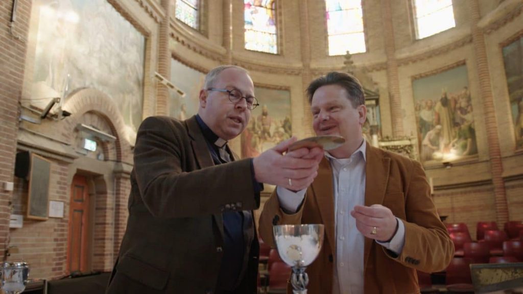 4 februari 2019Als blinde weet ik soms niet goed of ik tegen iemand kan gaan praten. Is hij met iets anders bezig? Kijkt hij naar iemand anders? Kortom: ben ik wel een beeld? Zou ik nu iets kunnen zeggen? Ook als mijn gesprekspartner een tijdje stil is, vraag ik me soms af: is zijn aandacht verslapt of is hij afgeleid door iets anders? Het gevolg is dat ik me ook maar stil houd en wacht totdat hij laat merken dat zijn aandacht nog steeds bij ons gesprek is. Ben ik wel in beeld? Afgelopen donderdag hoefde ik me dat niet af te vragen. Een cameraman, een geluidsman en een documentairemaker vervoegden zich bij de pastorie om mij een hele dag te filmen en vragen te stellen. Natuurlijk wist ik dat ze zouden komen en ik had dus allerlei activiteiten gepland die me voor hen interessant leken. Het begon met de kapelviering, waarin ik voor deze gelegenheid zelf voorging. Daarna wat werken achter de computer en vervolgens ging ik voor het eerst in de kerk oefenen met het liturgisch vaatwerk. Ik had pastor Nico Knol opgetrommeld om mij uit te leggen wat er tijdens een mis allemaal gedaan wordt bij het altaar. De koster van die dag had het één en ander voor ons klaargezet: een kelk, een pateen met hosties, nog een pateen, ampullen met water en wijn en de nodige doekjes. Ik weet globaal wel wat een priester bij het altaar doet, maar stap voor stap alle handelingen doornemen met de bijbehorende gebaren, dat had ik nog nooit gedaan.Het was voor pastor Nico en voor mij een bijzondere ervaring. We voelden ons allebei geraakt door het mysterie dat de Eucharistie voor ons is en waar ik nu voor het eerst zo dichtbij mocht komen. Af en toe vergaten we helemaal dat we gefilmd werden, zo gingen we op in wat we aan het doen waren. Tegen half één liep ik naar De Horstenburgh om daar de warme maaltijd te gebruiken. Ook dat moest worden gefilmd. Na nog wat shoots in de pastorie en een indruk van de Stille Aanbidding waren we toe aan het laatste onderdeel: hardlopen. Samen met mijn hardloopmaat rende ik het Hofland op en neer, waarbij de auto met de camera soms vóór ons reed en dan weer naast ons of achter ons. Er lag een beetje sneeuw, dus de opnames zijn ongetwijfeld mooi geworden. Zo was ik de hele dag in beeld, maar dit was nog maar het begin. Documentairemaker Olaf Koelewijn wil mijn weg naar het priesterschap in beeld brengen. Hij zal dus nog wel vaker naar Obdam komen om, samen met een cameraman en een geluidsman, opnames te maken van mij en van onze Sint Victorkerk.