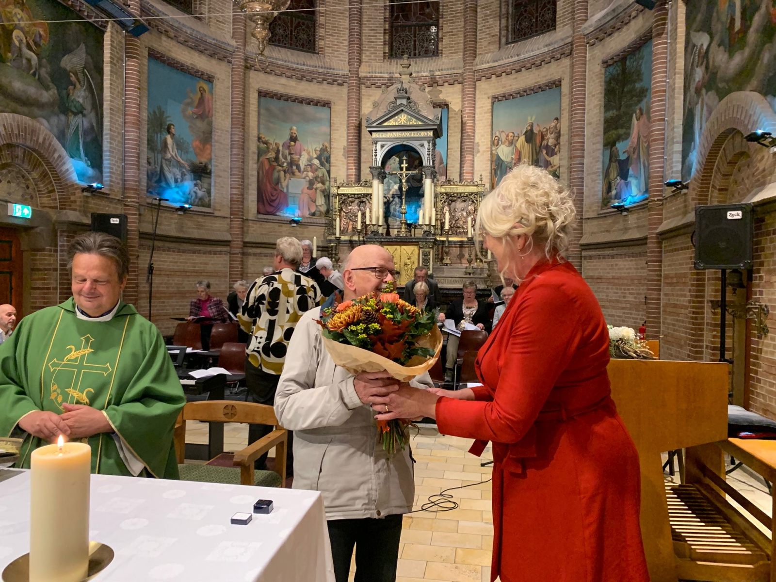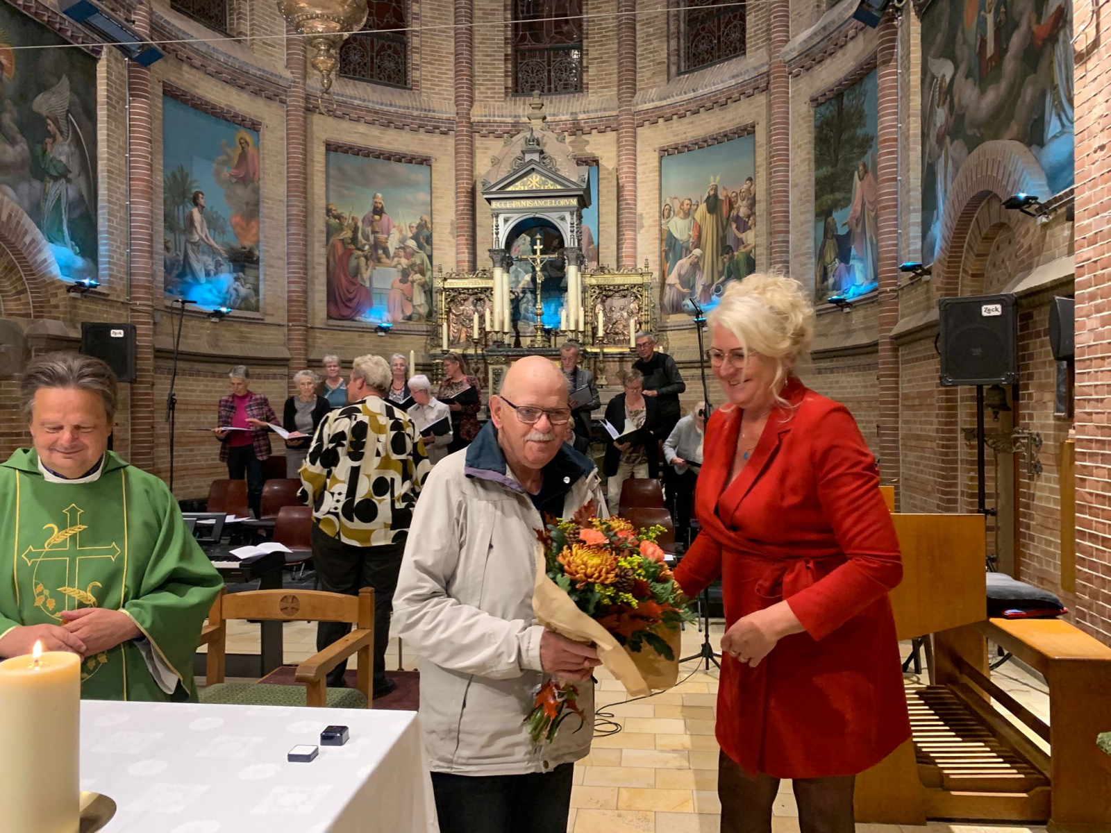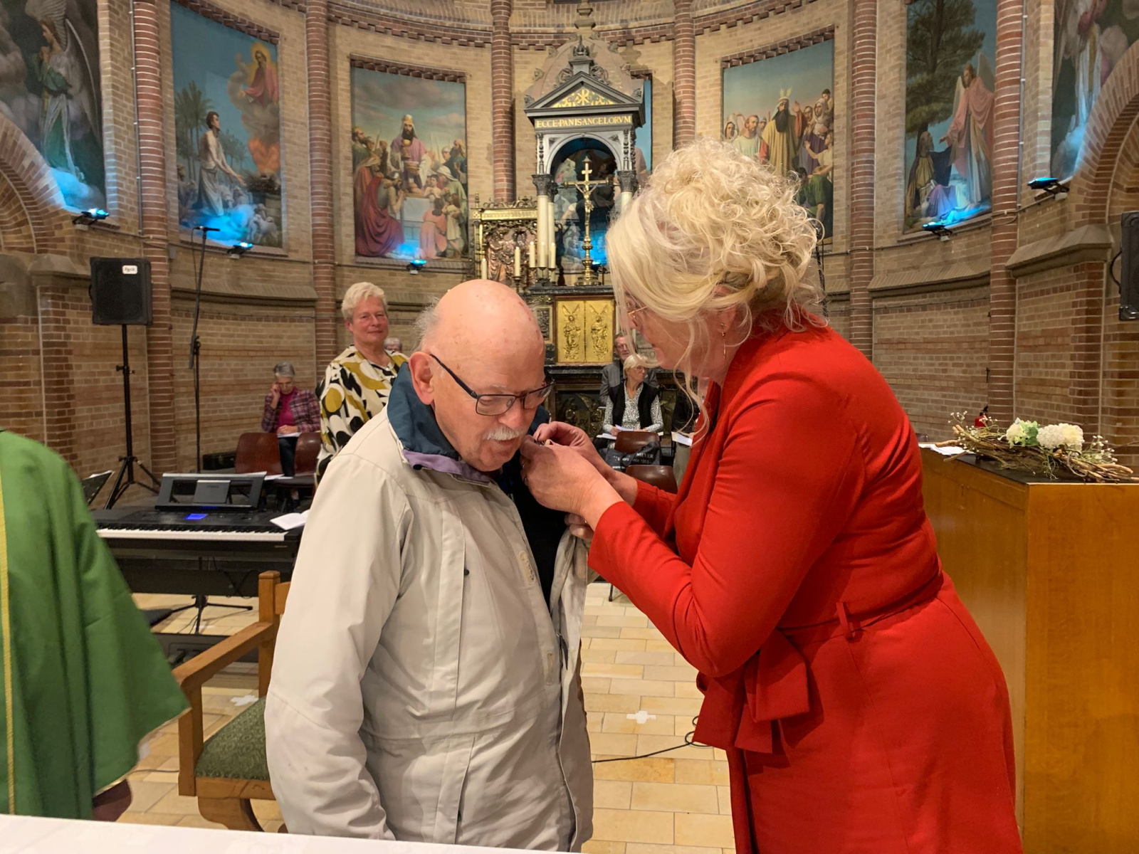 De gedenkdag van Sint Victor valt op 10 oktober. Rond deze datum zetten we altijd een parochiaan in het zonnetje die zich als vrijwilliger langdurig verdienstelijk heeft gemaakt. Deze vrijwilliger eren we met de Victorspeld, de erespeld van de parochie. Dit jaar viel die eer te beurt aan Job Jong. Hij is de man die al jarenlang het torenuurwerk bijhoudt. Vaak meerdere keren per week klimt hij de toren in om de klok zorgvuldig gelijk te zetten. Dat moet zo vaak gebeuren, omdat de zenders van providers die in de toren staan veel warmte afgeven, en die het tempo beïnvloeden waarin het uurwerk loopt.