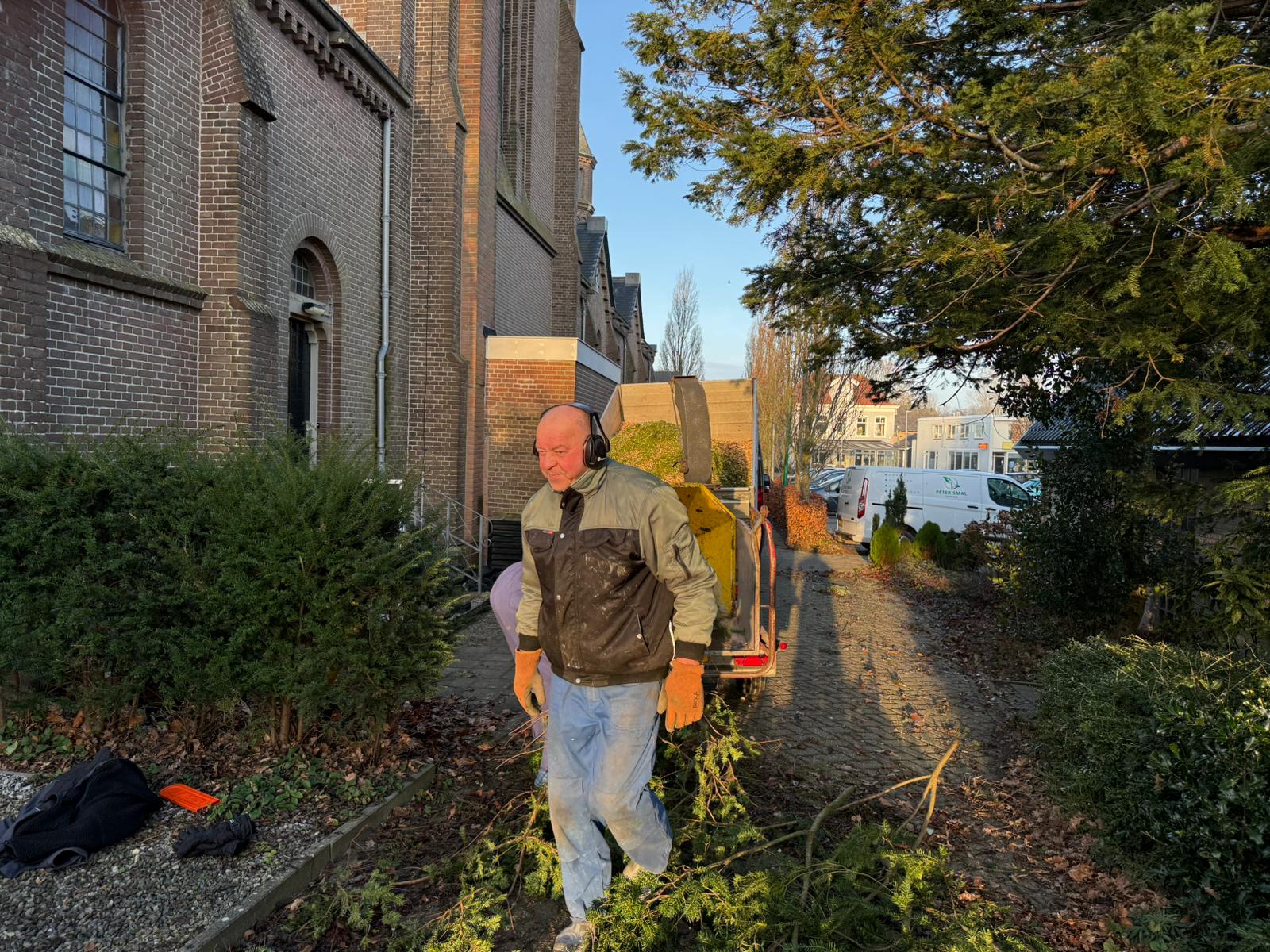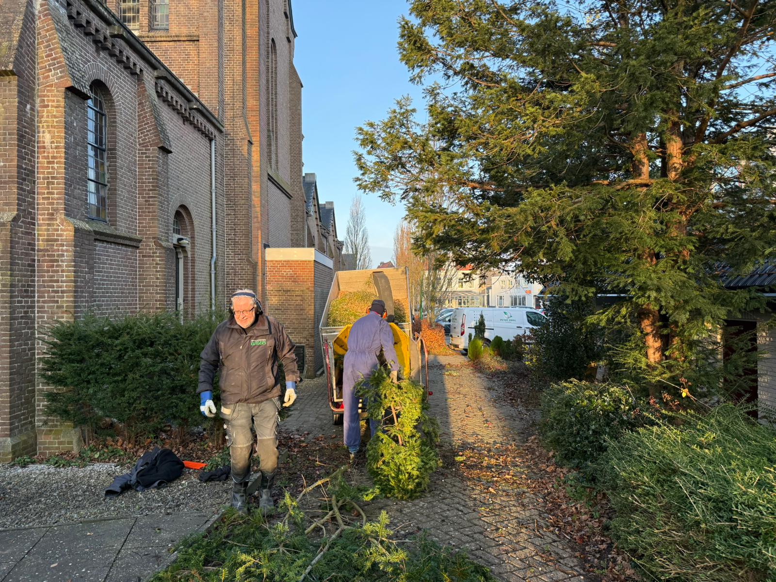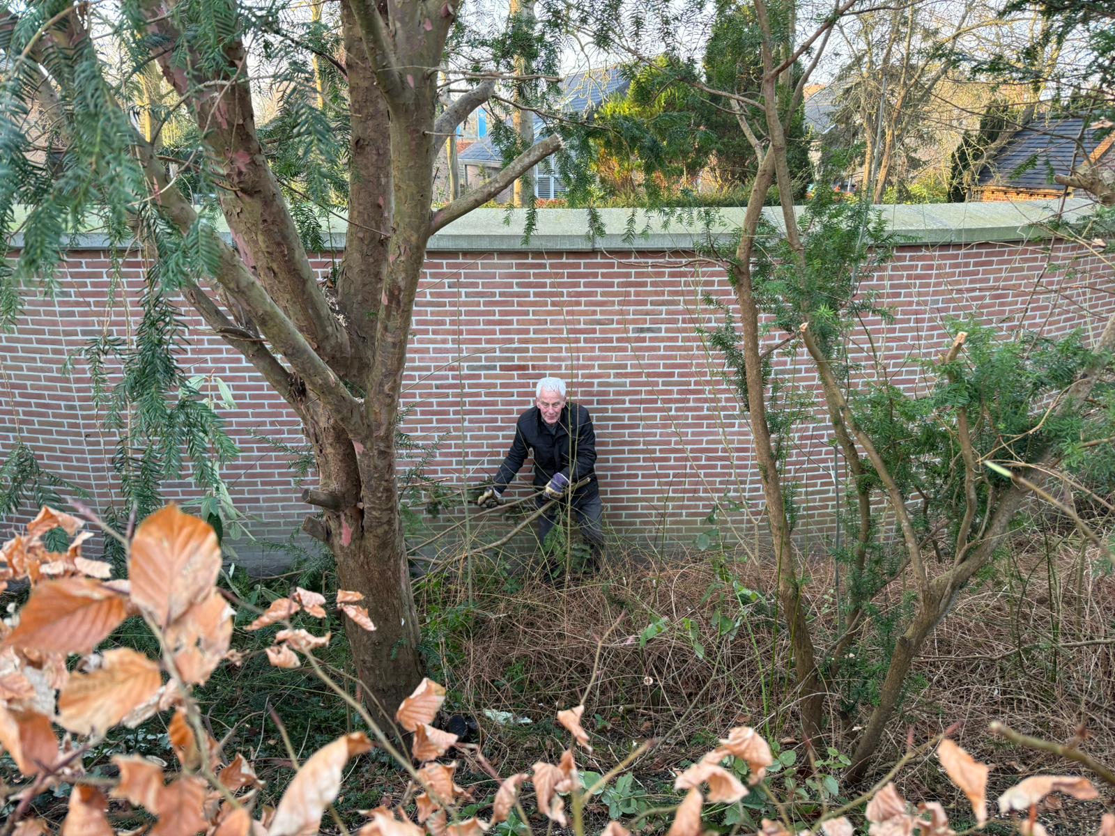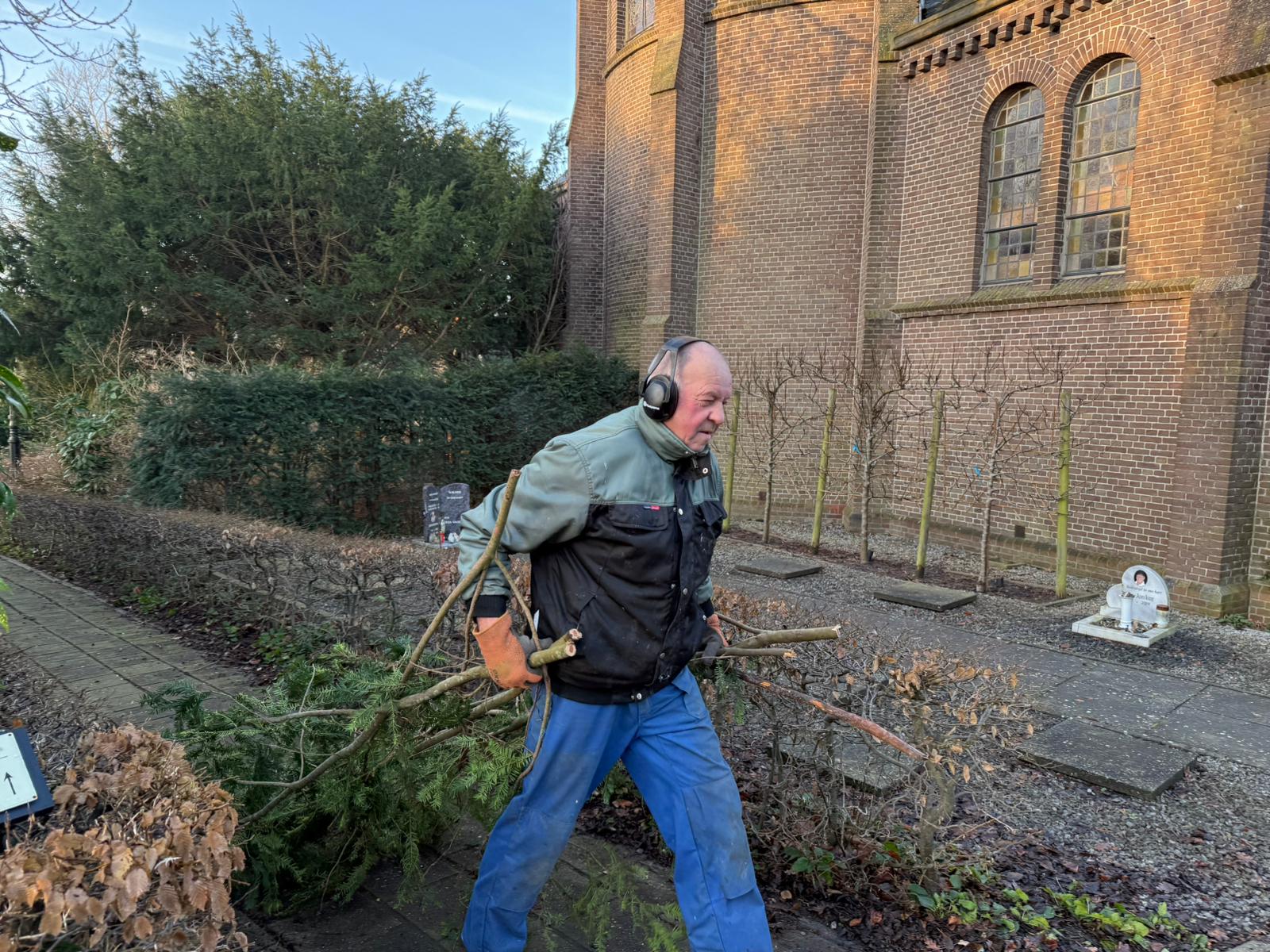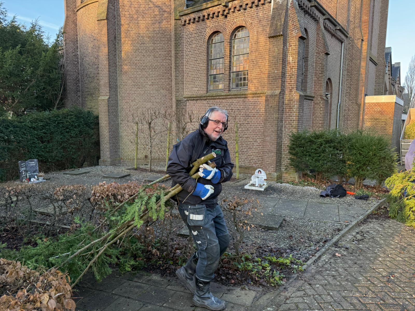 Omdat het een hele grote klus was, heeft Jan Beentjes extra hulp erbij gevraagd en kwamen Sjaak Blom en John Appelman de ploeg versterken. Er moest heel veel worden gesnoeid rondom de tuin en het kerkhof. Veel overhangende takken werden ingekort, omdat deze overlast bij de buren veroorzaakten.